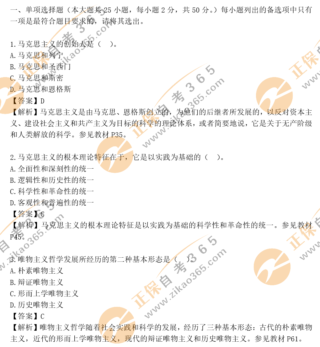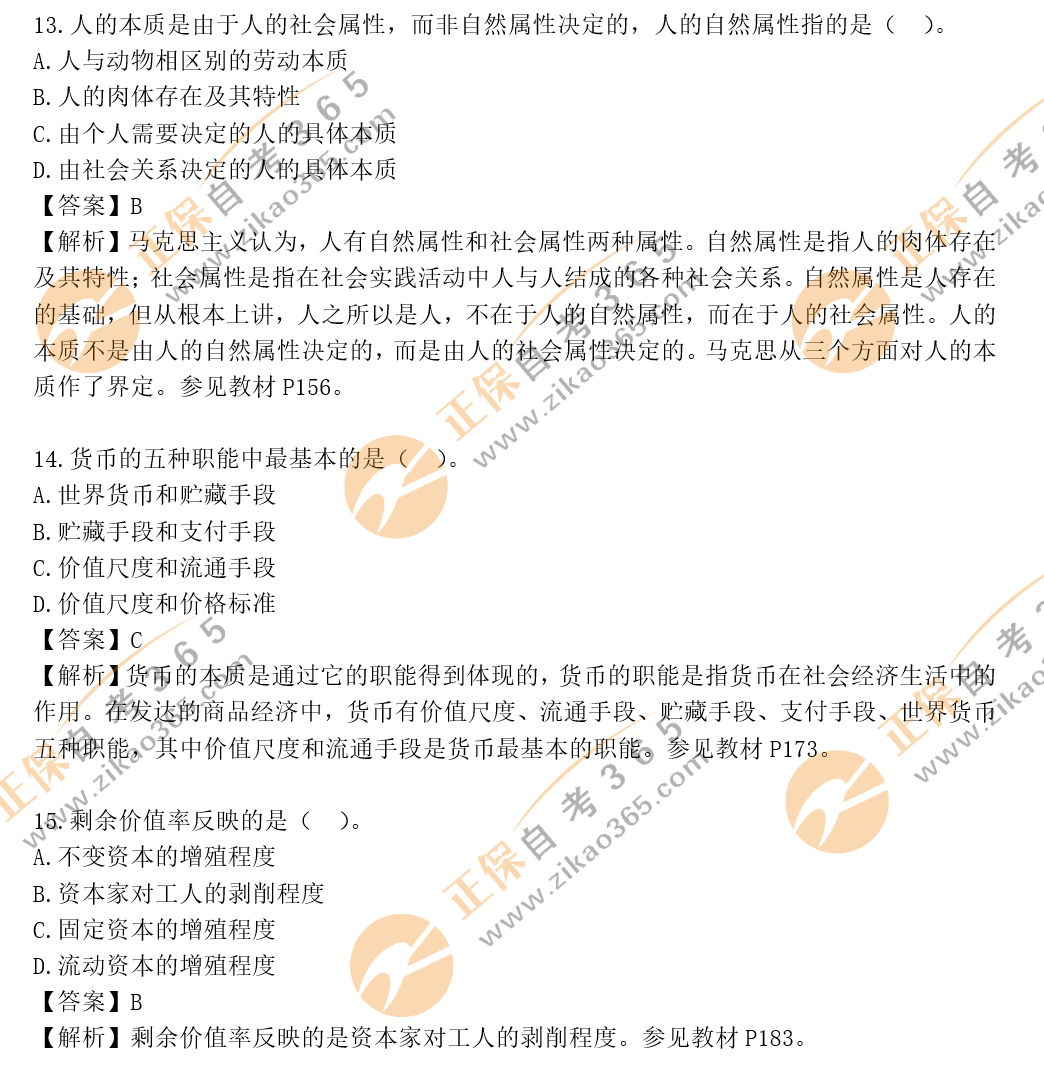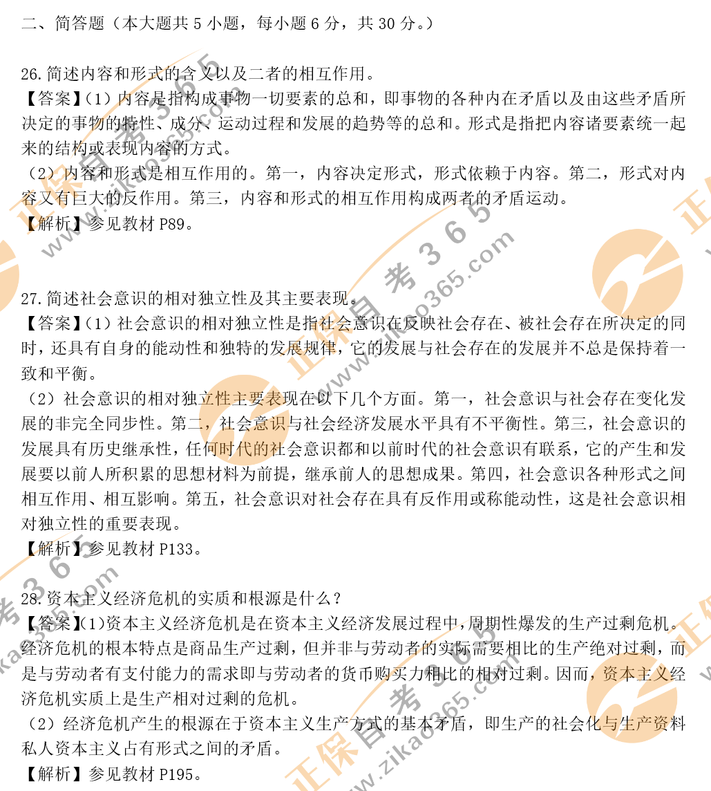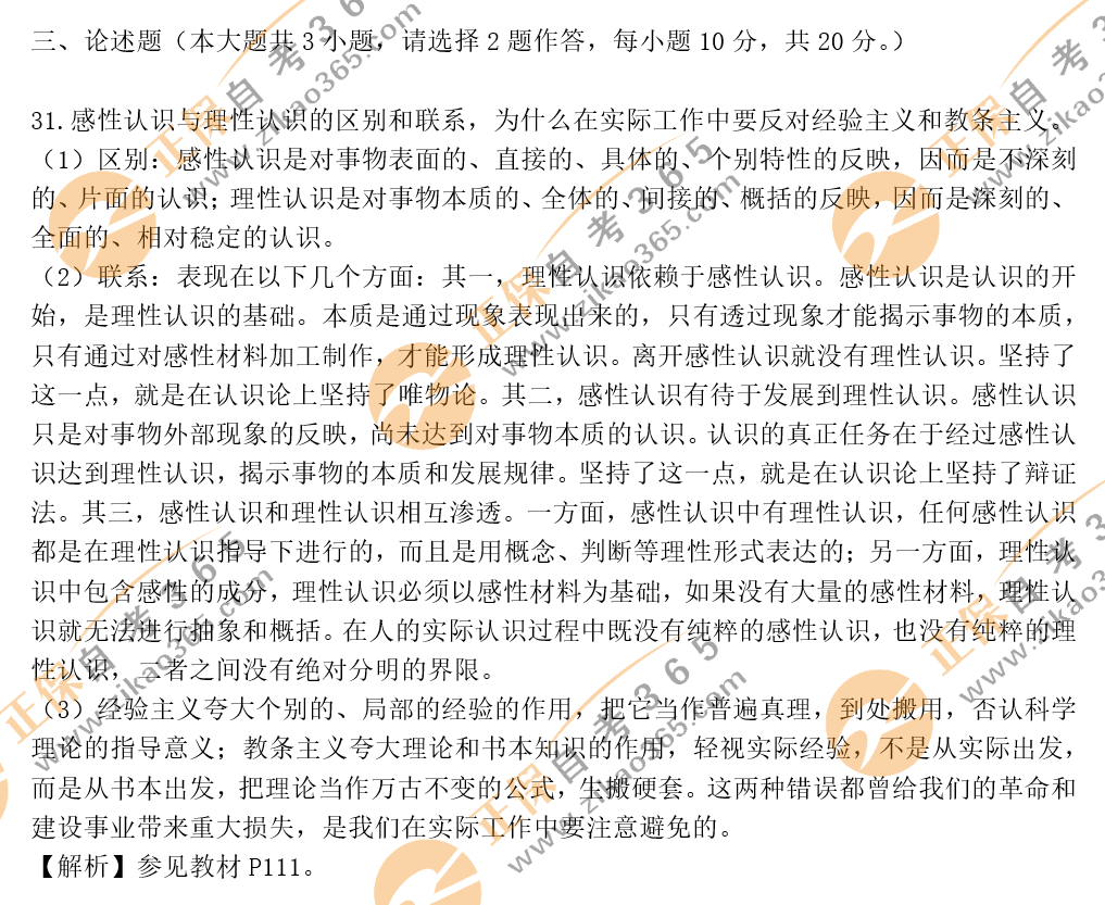 自考365提示您:以上內(nèi)容為2020年10月自考馬克思主義基本原理概論選擇題、簡(jiǎn)答題、論述題答案及解析,關(guān)注本站,更多科目試題及答案解析將陸續(xù)發(fā)布。