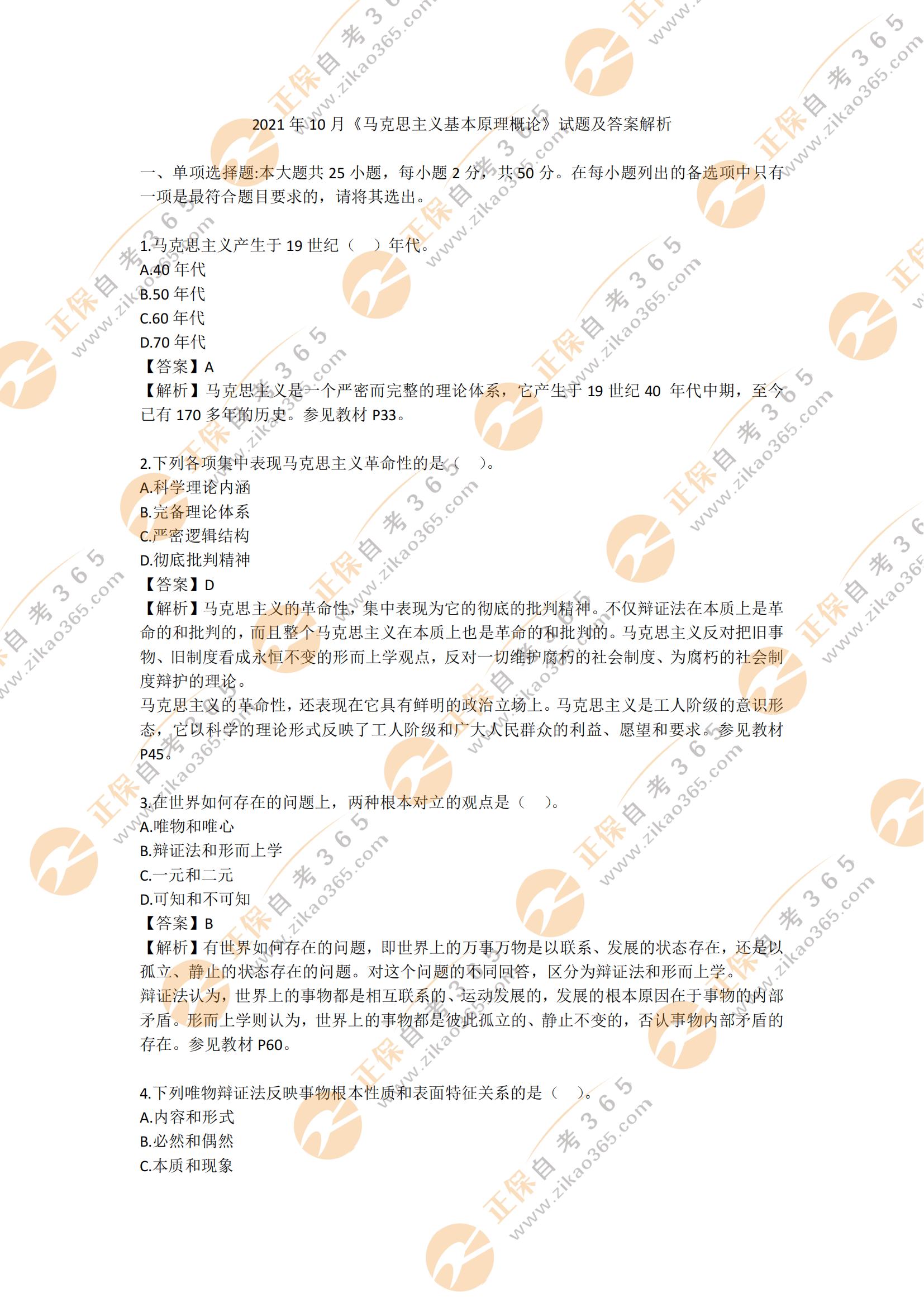 自考365提示您:以上內容為2021年10月自考馬克思主義基本原理概論試題答案及解析,關注本站,更多試題及答案解析將陸續(xù)發(fā)布。