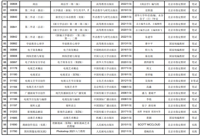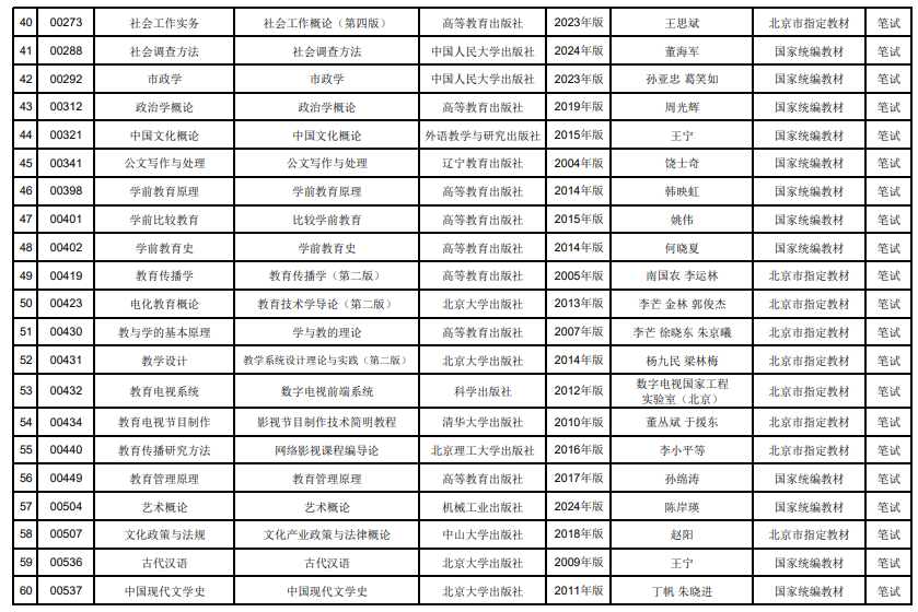甘肅省2026年4月高等教育自學考試教材大綱目錄