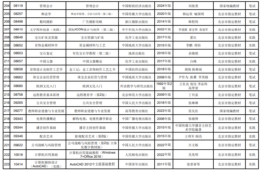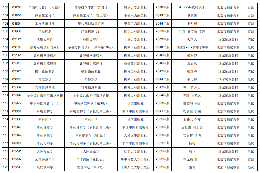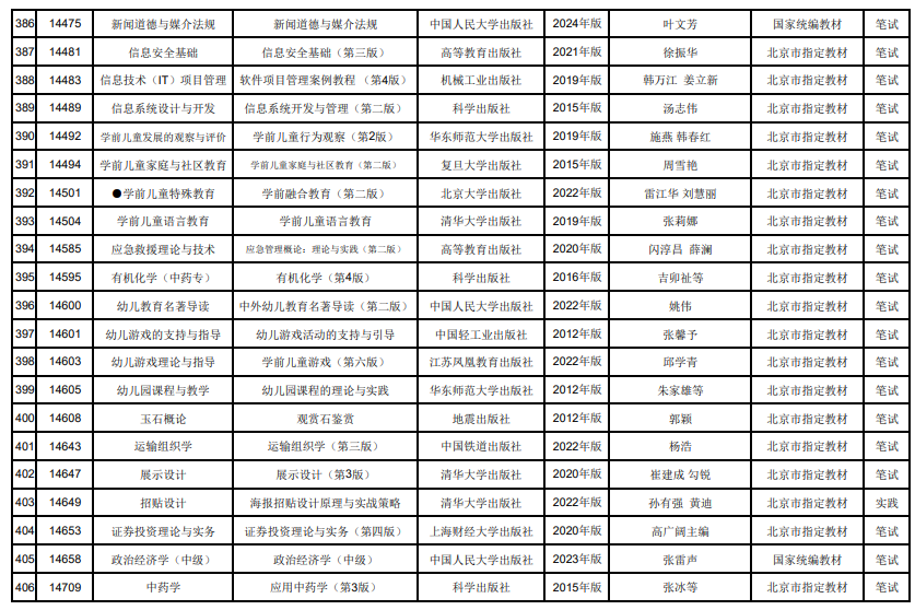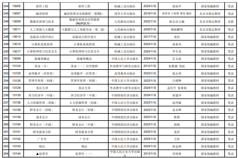 2026年青海省高等教育自學考試課程使用教材目錄(2025年11月更新)
