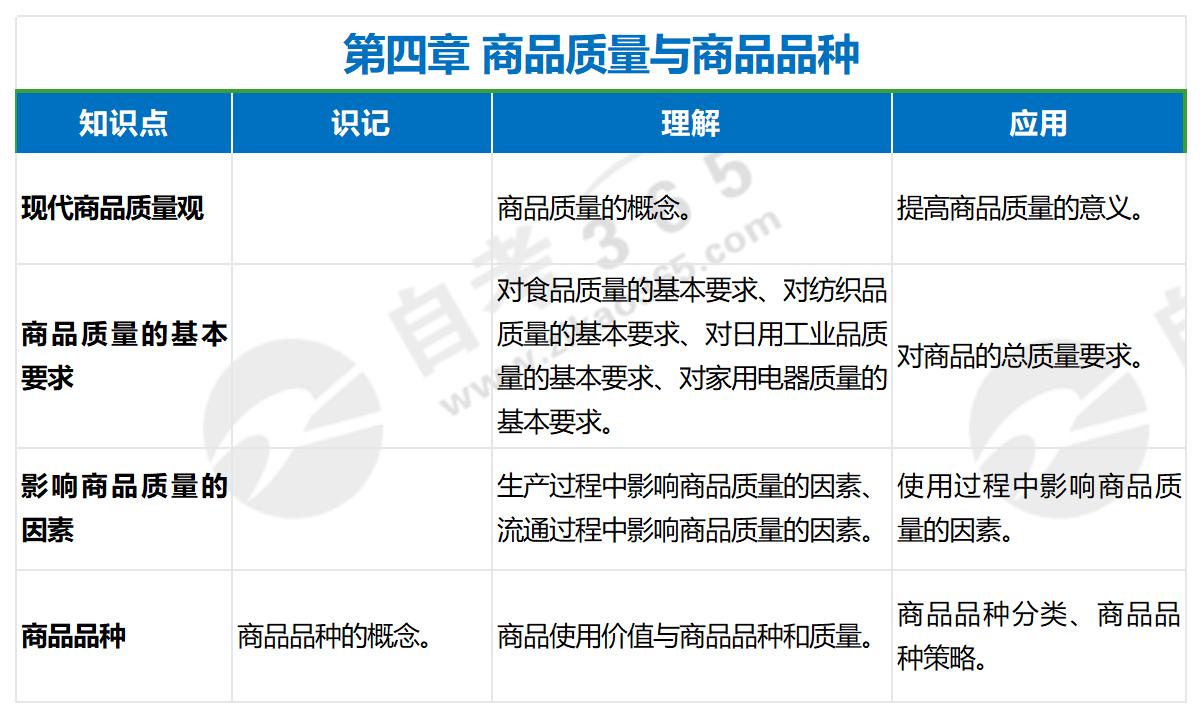 下面,我們一起來看看2024年商品學基礎(2018年版)考試大綱中,第四章有哪些知識點吧!