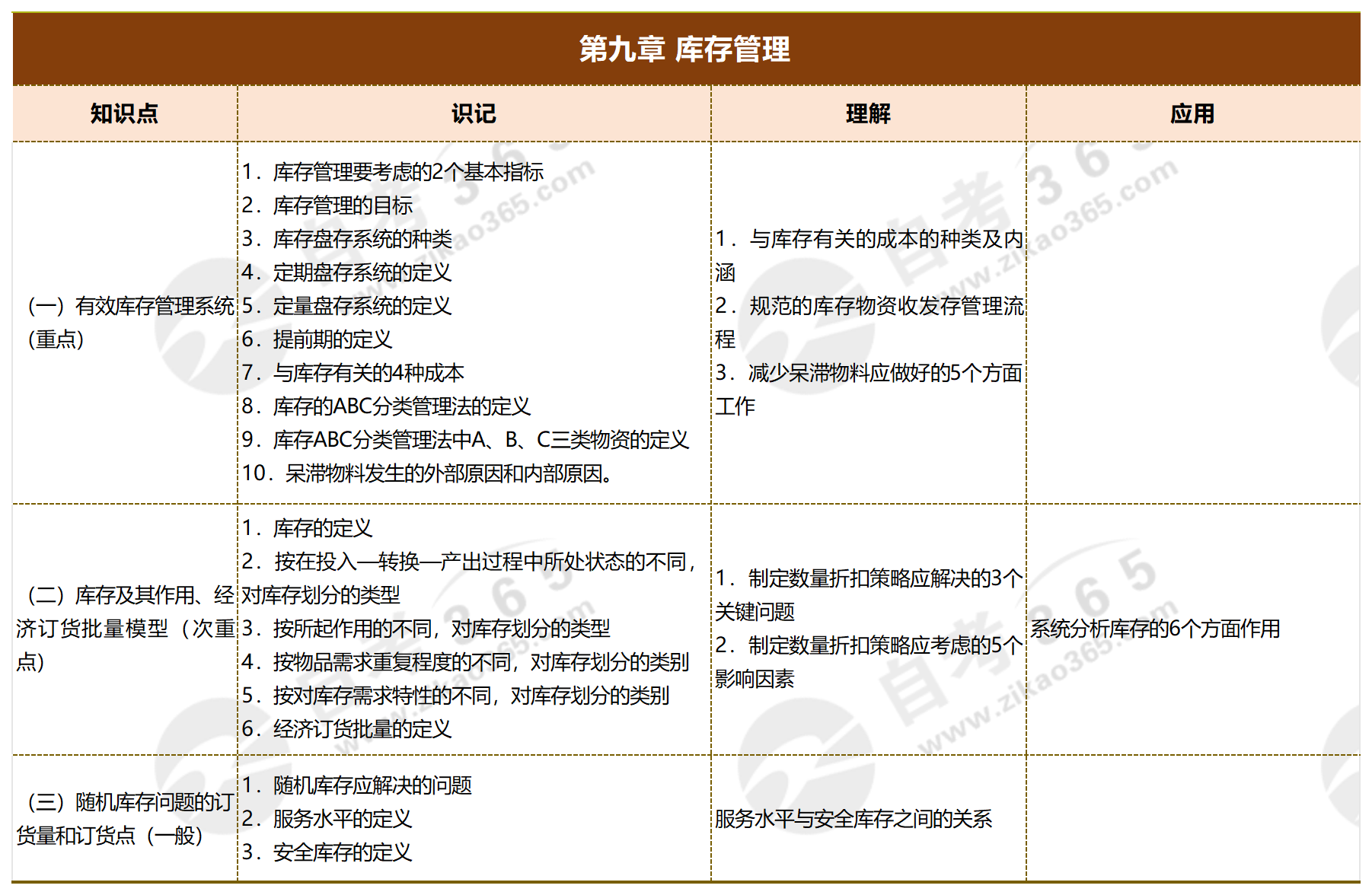2024年自考運(yùn)營(yíng)管理知識(shí)點(diǎn)框架:第九章 庫(kù)存管理
