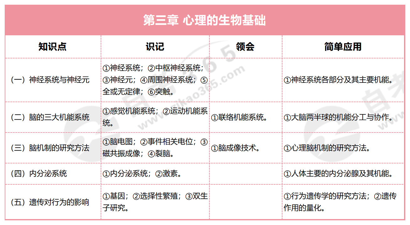 自考心理學(xué)導(dǎo)論(2015版)知識點(diǎn)框架:第三章 心理的生物基礎(chǔ)
