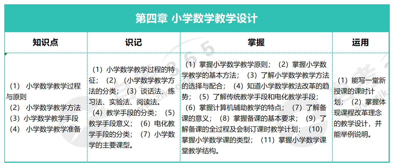 自考小學數(shù)學教學研究(2013年版)知識點框架:第四章 小學數(shù)學教學設計