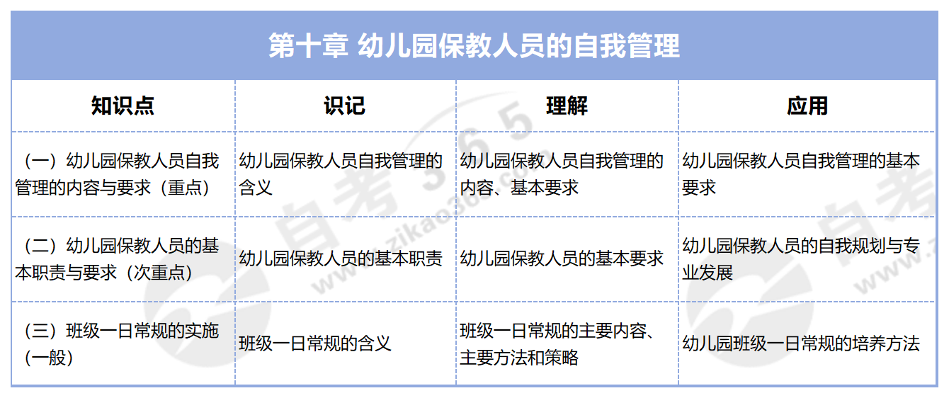 自考幼兒園班級(jí)管理(2016年版)知識(shí)點(diǎn)框架:第十章 幼兒園保教人員的自我管理