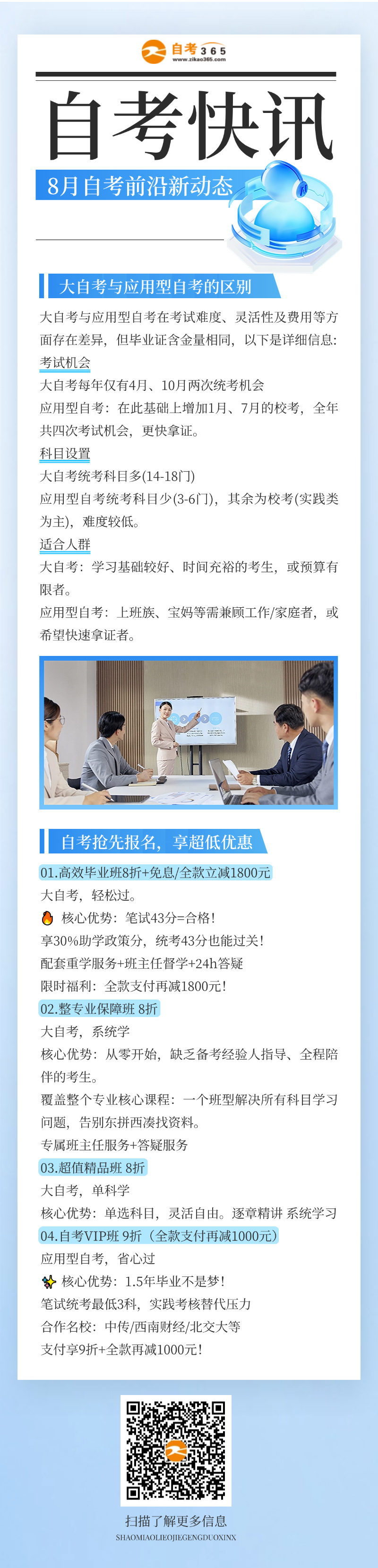 8月自考新動(dòng)態(tài),限時(shí)優(yōu)惠開(kāi)搶!!