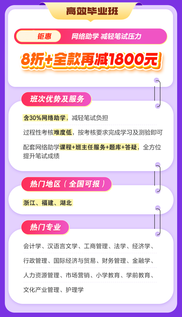 在此期間,自考365將送上超低折扣。想要提升學(xué)歷的同學(xué)抓緊機(jī)會(huì)鎖定名額吧。