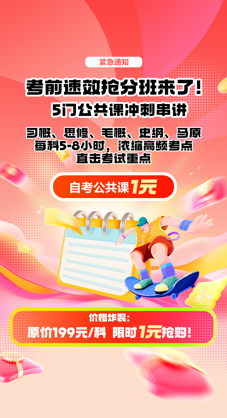 1元搶購“考前速效搶分班”!自考5門公共課,考試提效專用!