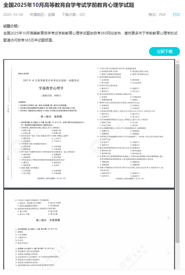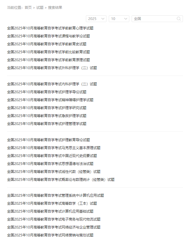 25年10月自考考題已大量上線!批量整套下載看這里!
