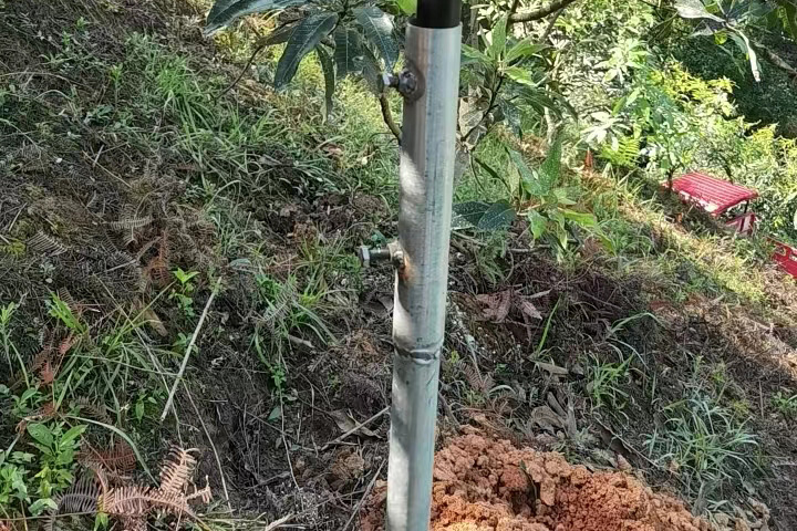 芒果果樹一般個頭比較高,為了使太陽能殺蟲燈盡量到達最大的覆蓋面積,潘師傅充分發(fā)揮主觀能動性,獨創(chuàng)了一種太陽能殺蟲燈安裝方法。在現有燈桿高度的基礎上,潘師傅設計了一款帶底座的燈桿套。這種設計有兩個好處:一是增加了太陽能殺蟲燈的高度,進而增加了太陽能殺蟲燈實際覆蓋面積。二是焊接了燈桿底座可以使用水泥基礎進行固定燈體,更加牢固和安全。可以說,這種設計為TFS10這款太陽能殺蟲燈的安裝和使用拓展了思路。