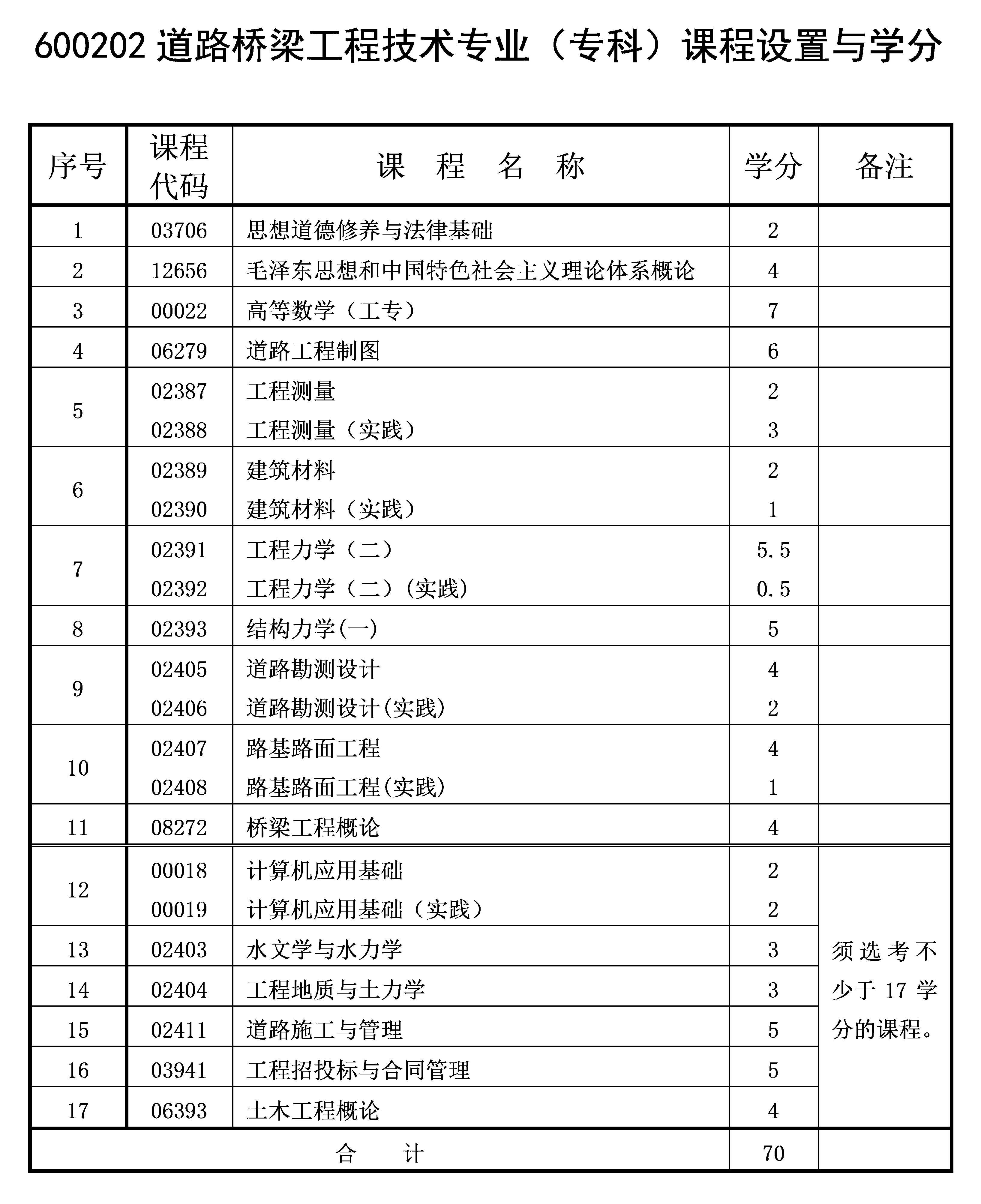 2021年10月重慶自考專科道路橋梁工程技術(shù)專業(yè)計(jì)劃(停考過渡)