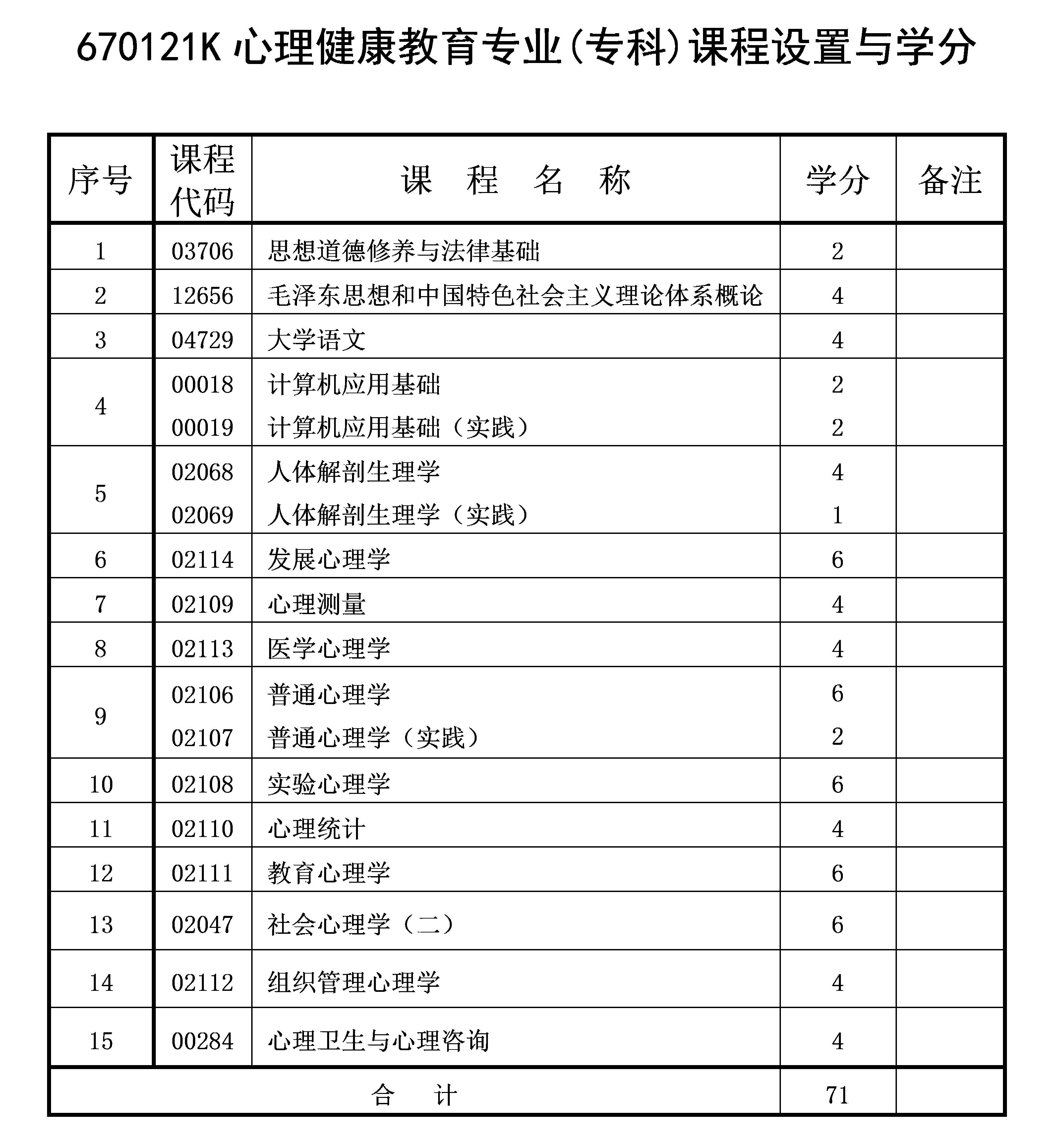 2021年10月重慶自考專科心理健康教育專業(yè)計(jì)劃