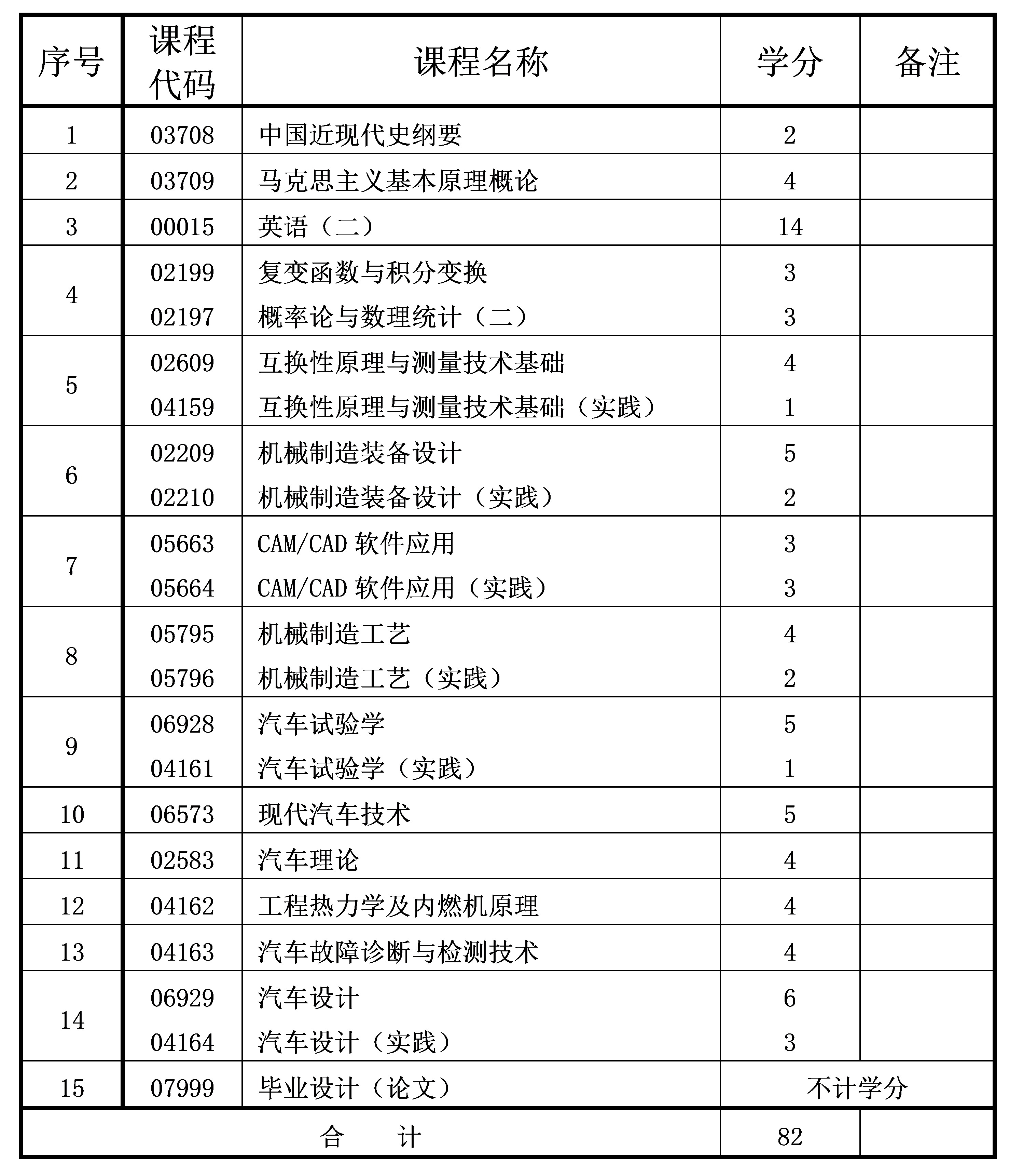 2022年4月重慶自考本科車輛工程專業(yè)計(jì)劃