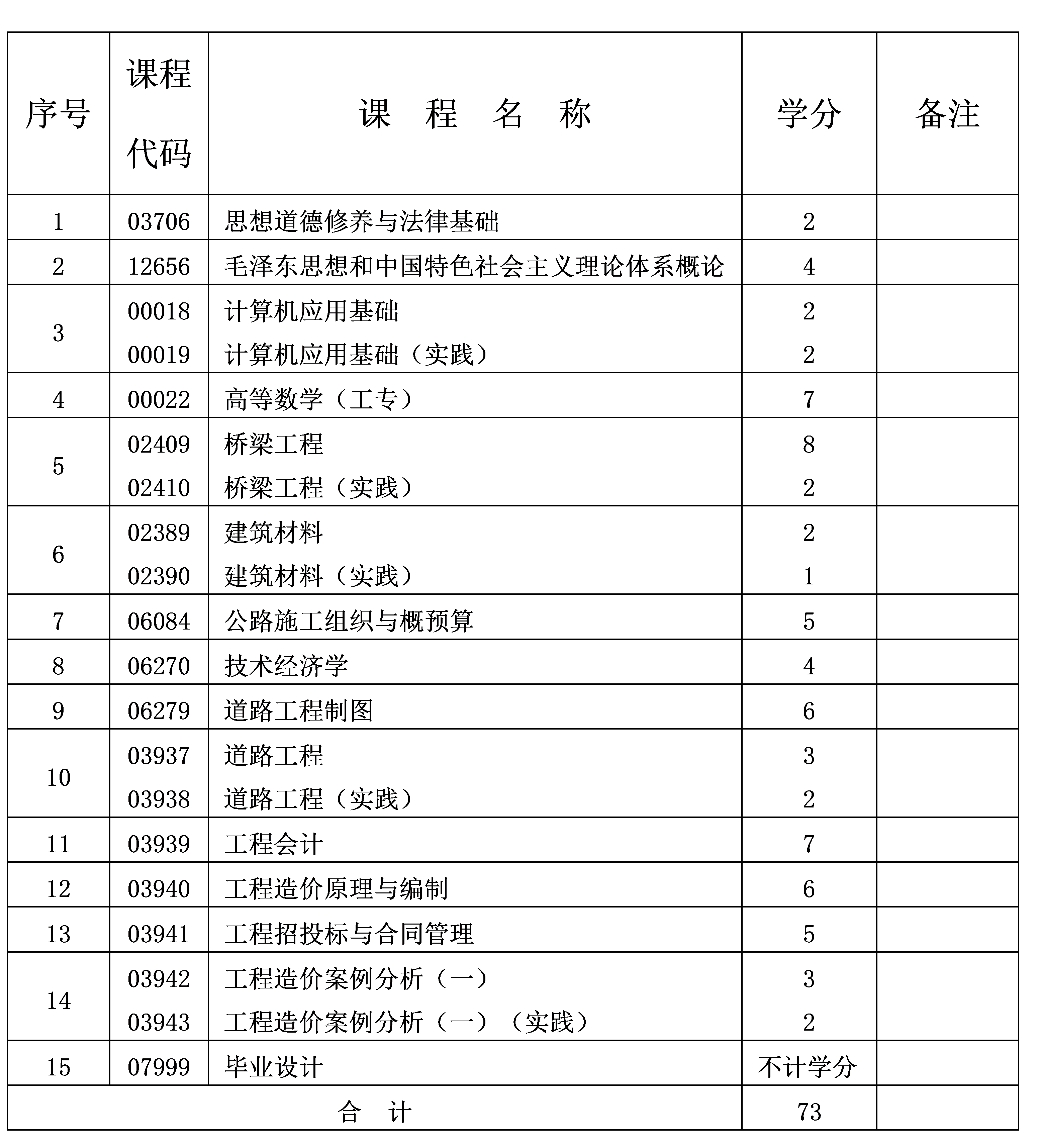 2023年10月重慶自考專科工程造價專業(yè)計劃