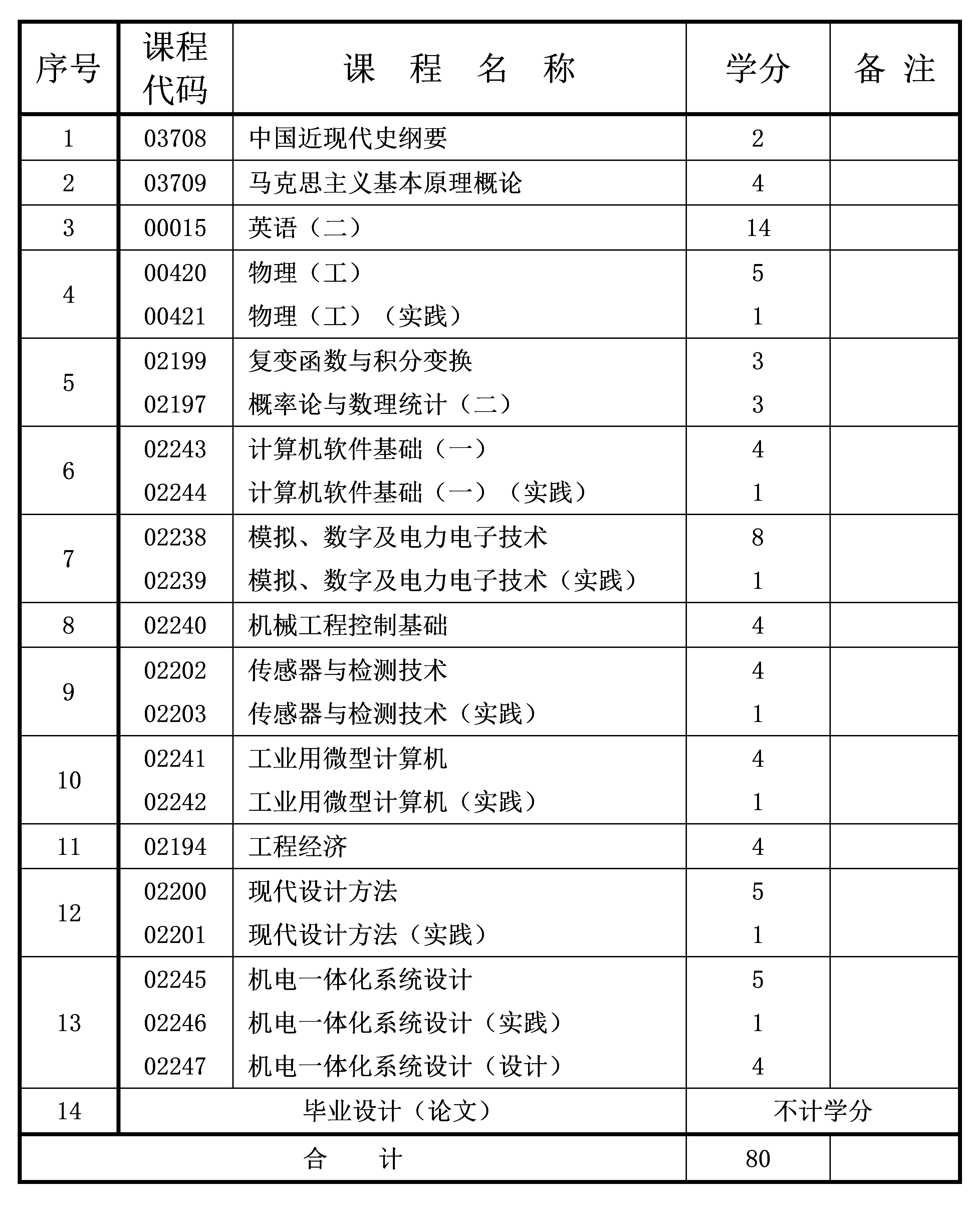 2023年10月重慶自考本科機(jī)械電子工程專業(yè)計(jì)劃