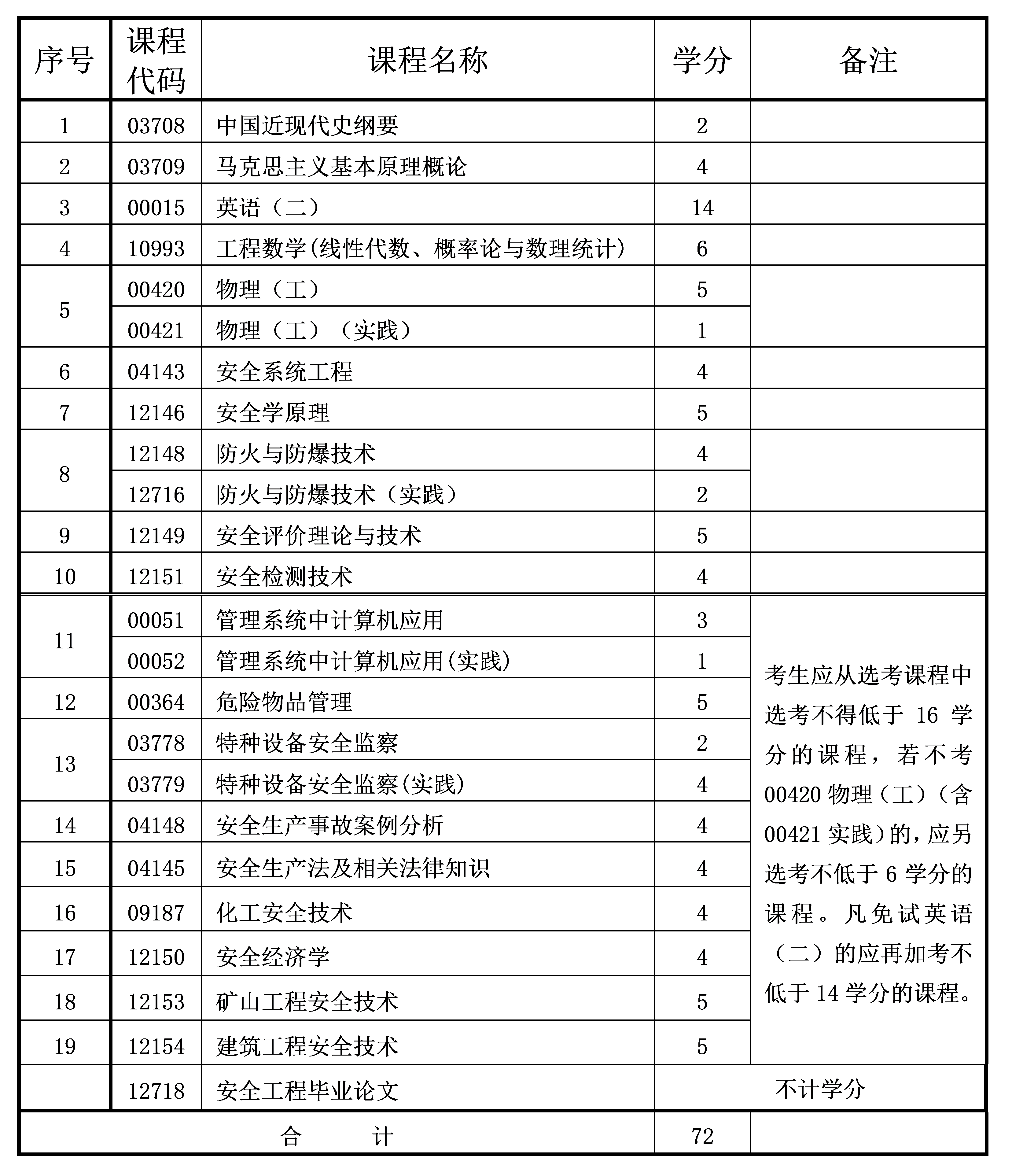 2023年10月重慶自考本科安全工程專業(yè)計(jì)劃