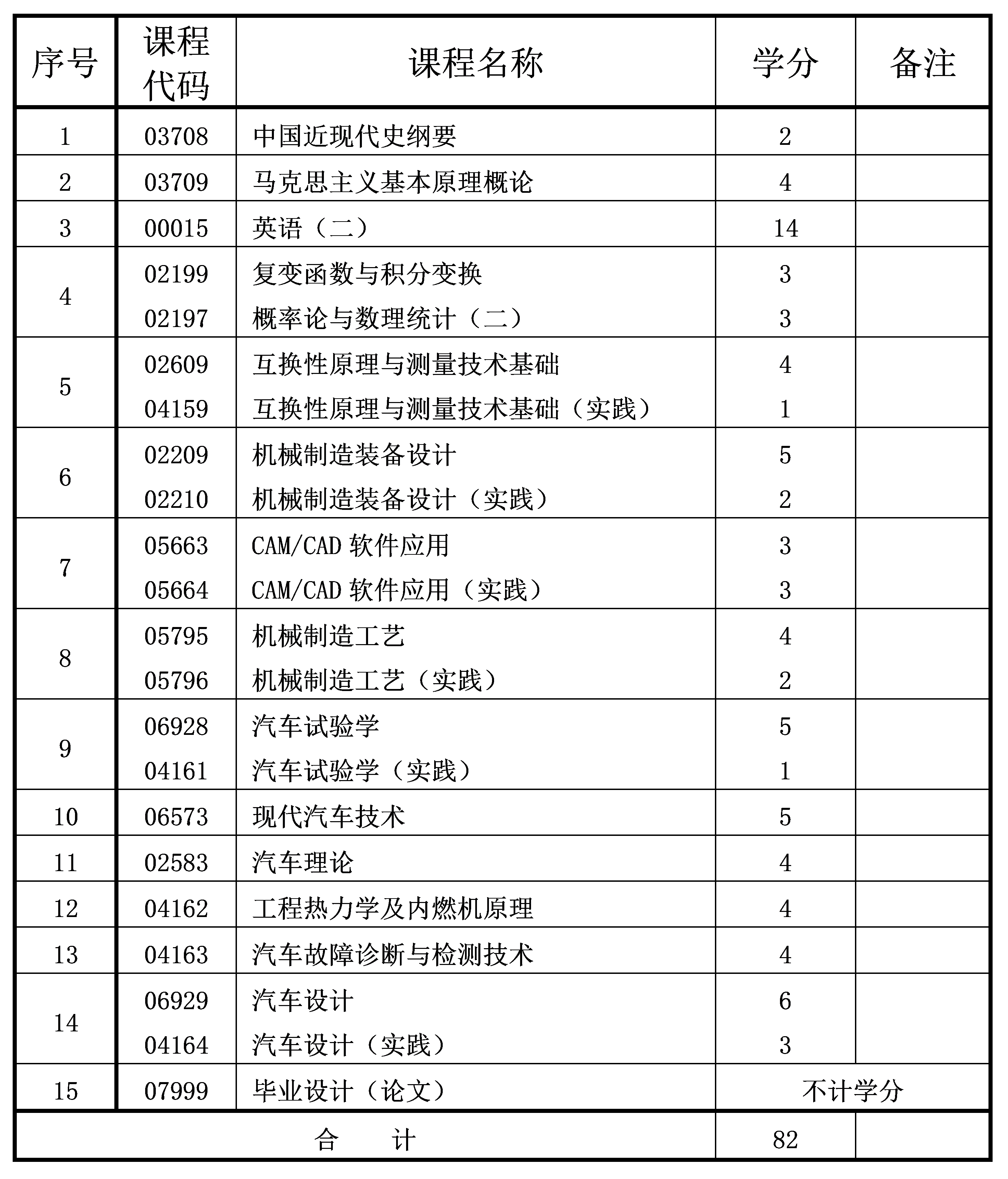 2023年4月重慶自考本科車輛工程專業(yè)計(jì)劃