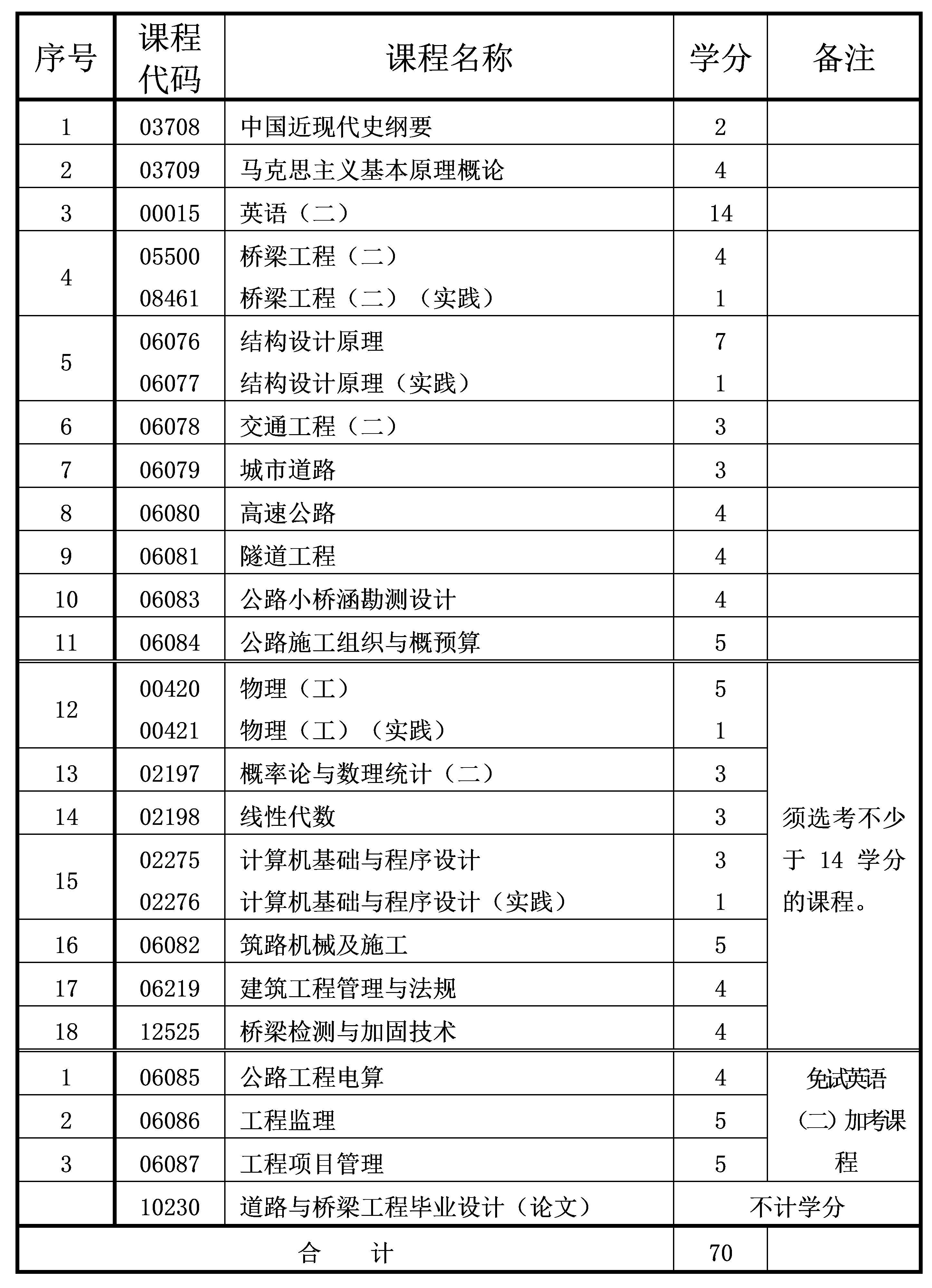 2023年4月重慶自考本科道路橋梁與渡河工程專業(yè)計劃
