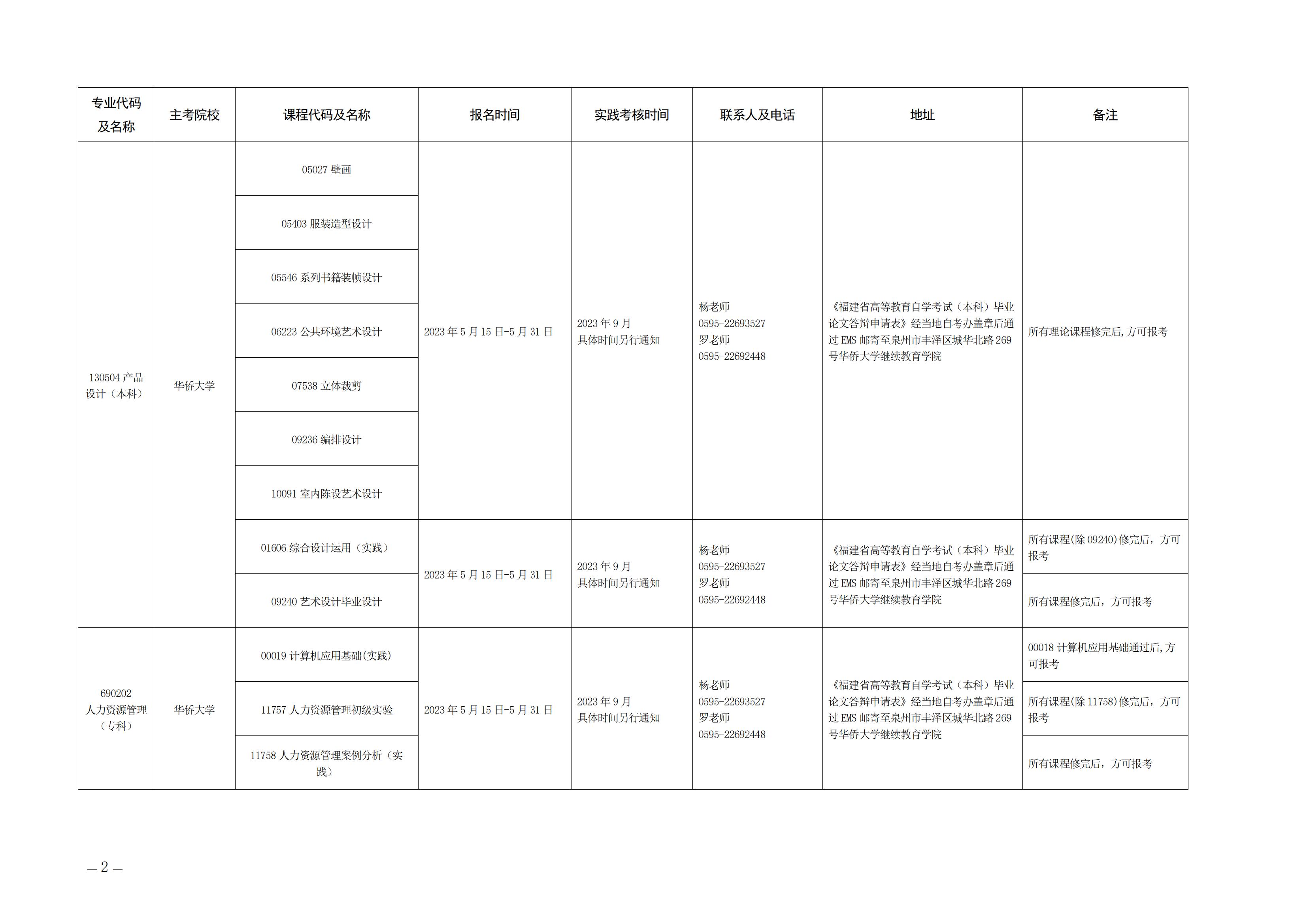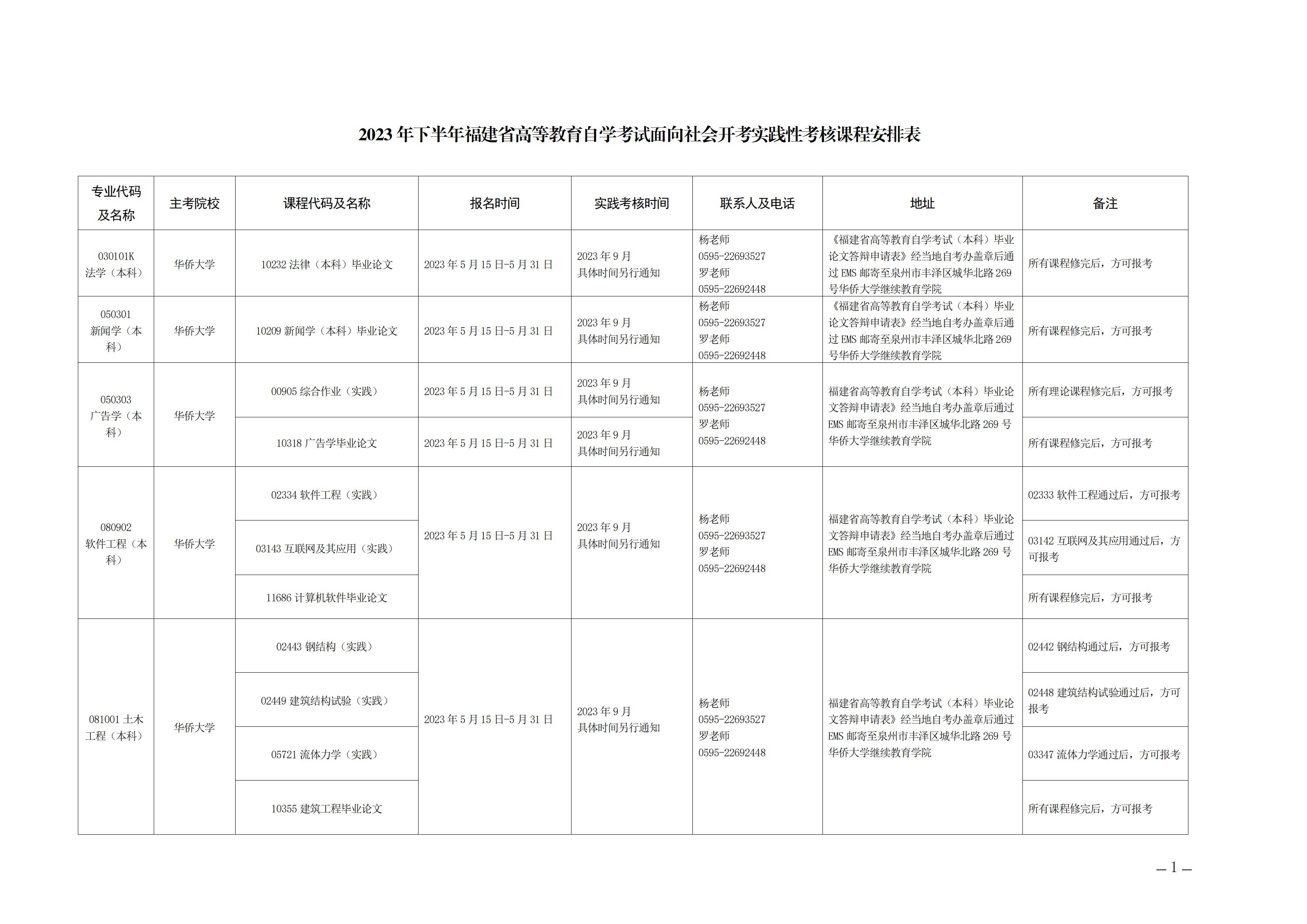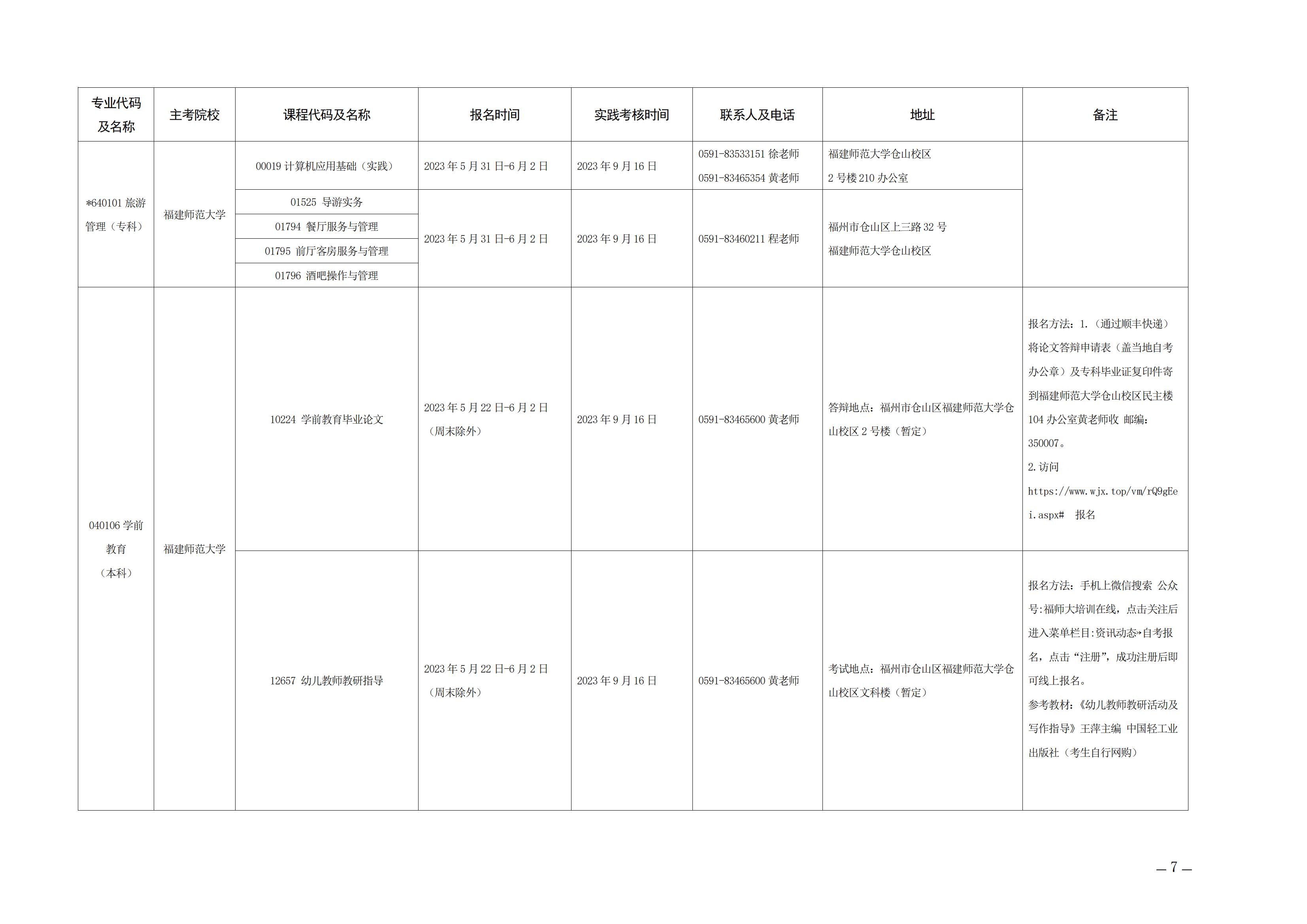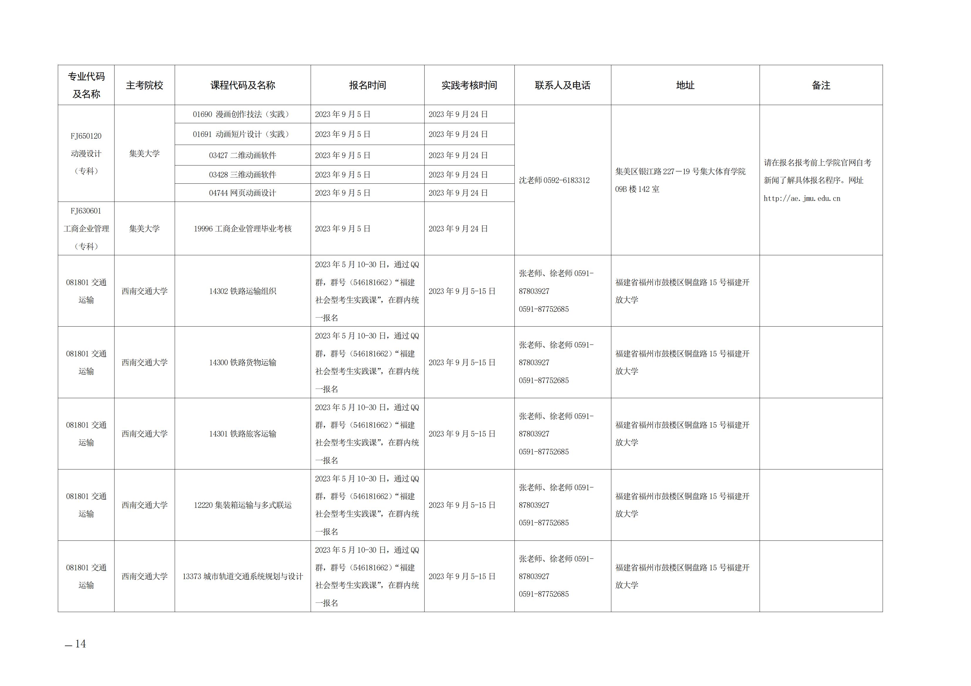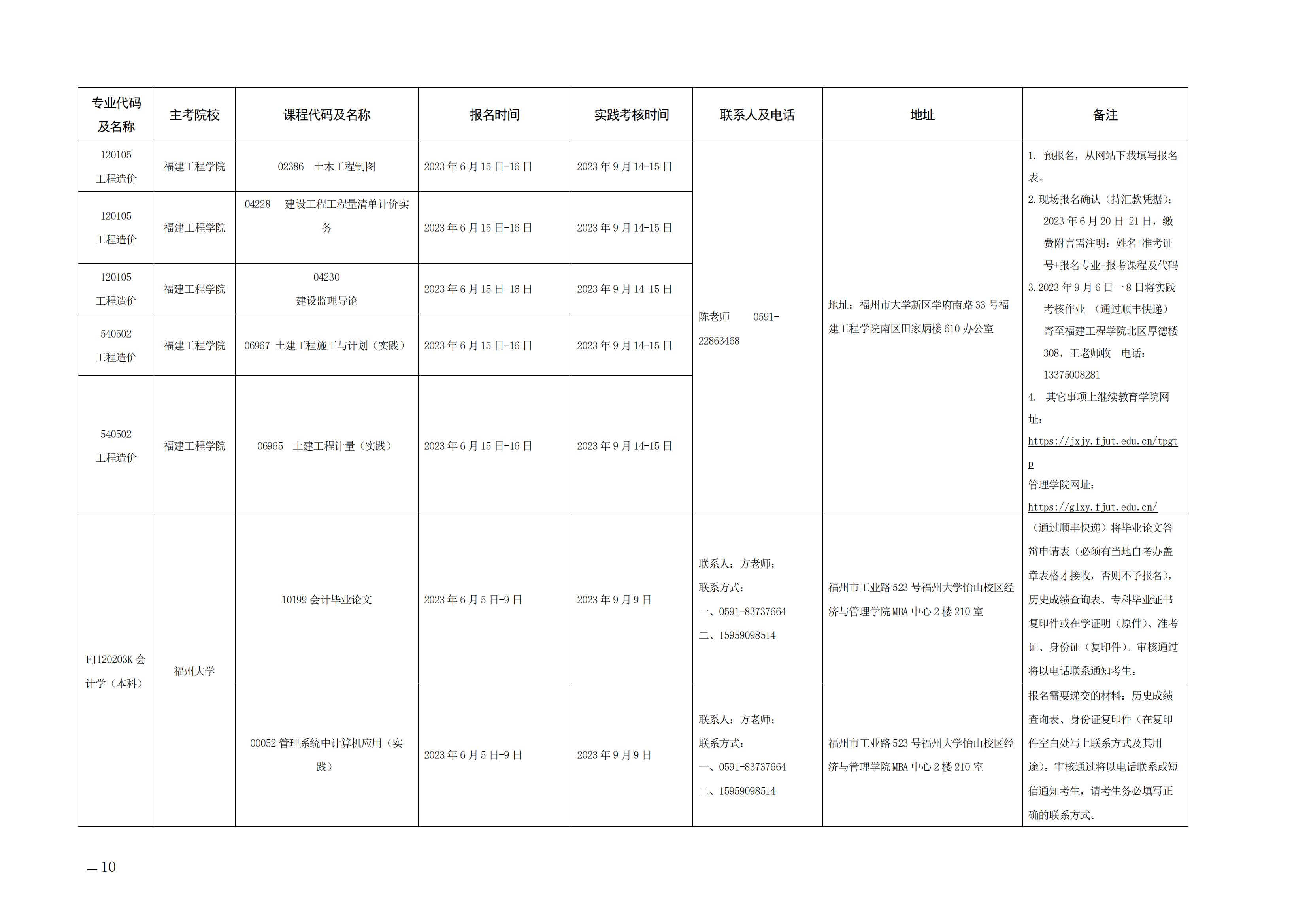 2023年下半年福建自考面向社會開考實踐性考核課程安排表
