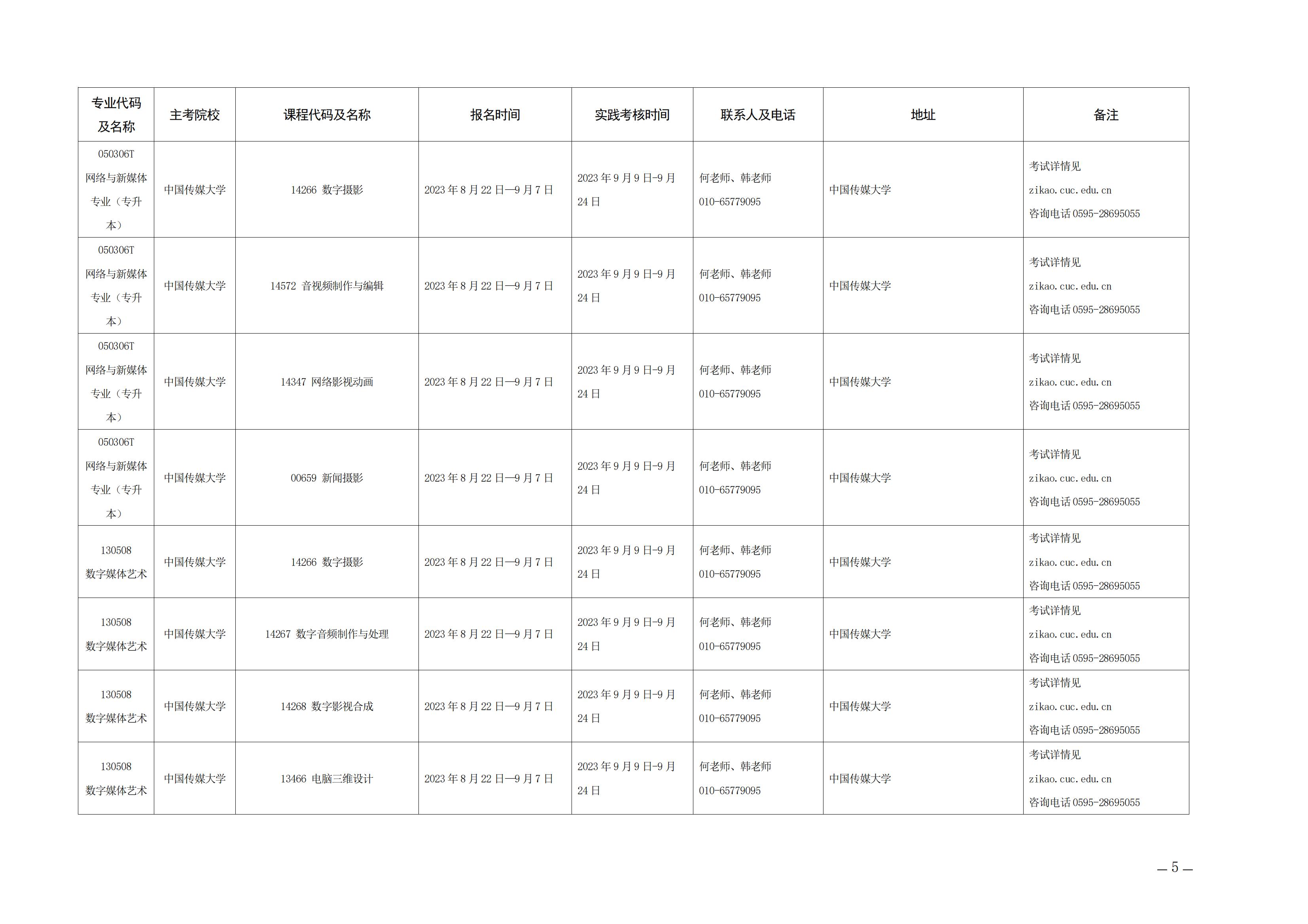 - 中國傳媒大學(xué)關(guān)于福建2024年上半年自考面向社會開考專業(yè)實踐性考核課程報名通知