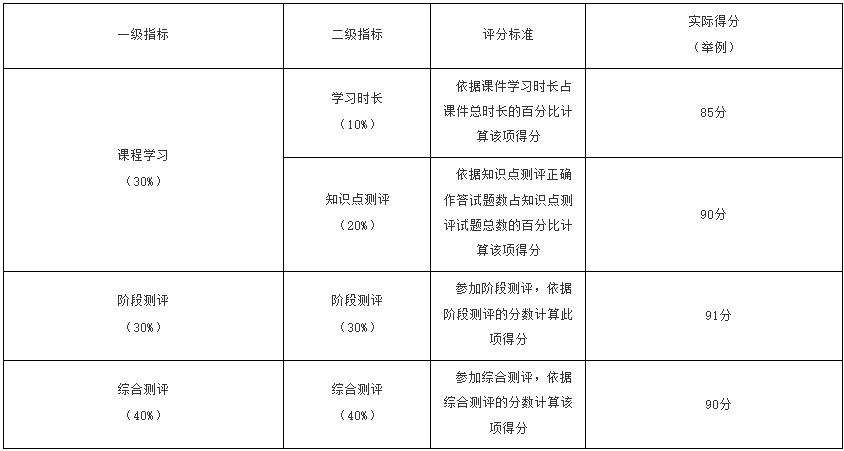 網(wǎng)絡(luò)助學(xué)課程過(guò)程性評(píng)價(jià)包括以下內(nèi)容: