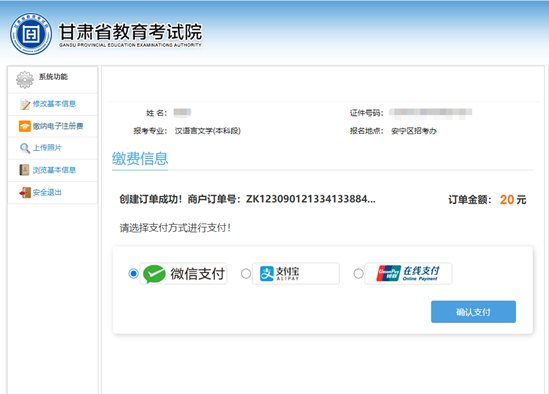 考生繳費成功后,重新登錄進入系統(tǒng),所展現(xiàn)的頁面如下圖所示: