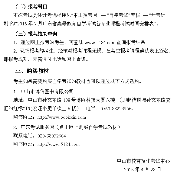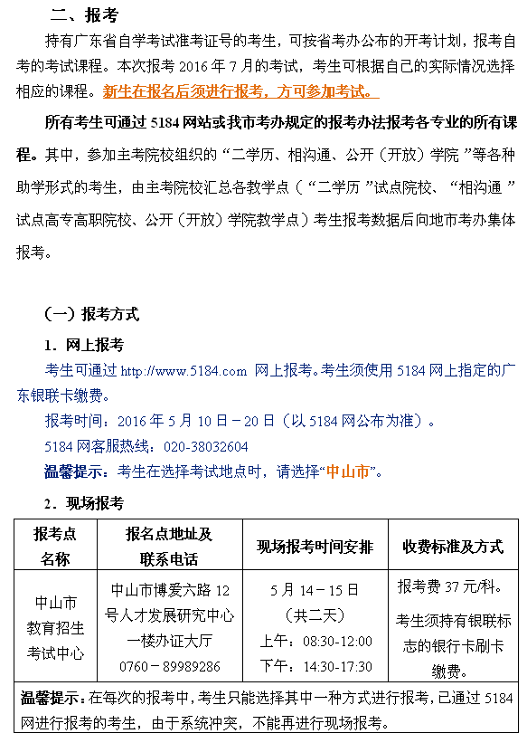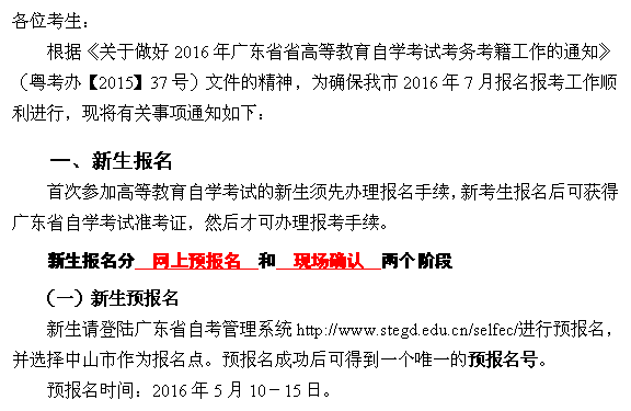 2016年7月中山自學(xué)考試報(bào)名時(shí)間安排