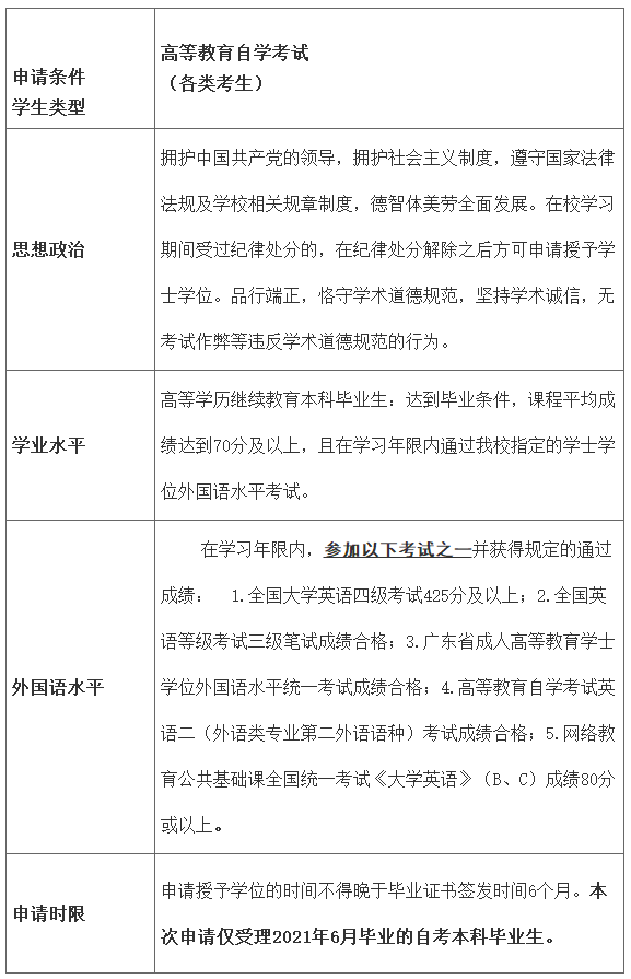 根據(jù)《華南師范大學(xué)學(xué)士學(xué)位授予工作細(xì)則(修訂)的通知》(華師[2021]144號(hào))和省學(xué)位辦有關(guān)通知精神,結(jié)合當(dāng)前新冠肺炎疫情防控工作要求,為做好今年冬季華南師范大學(xué)經(jīng)濟(jì)與管理學(xué)院自學(xué)考試學(xué)士學(xué)位授予工作,有關(guān)事項(xiàng)通知如下: