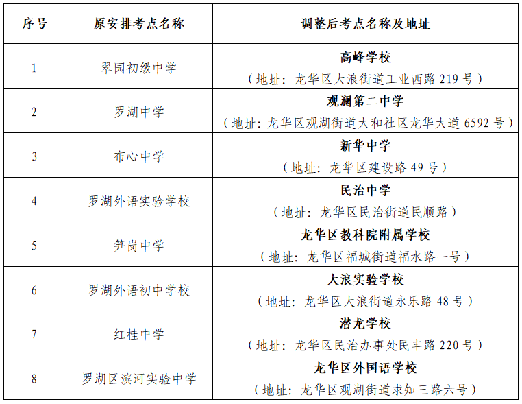 深圳市2022年1月自學(xué)考試補考將于7月9日至10日舉行,鑒于當前疫情形勢變化,為最大限度保障考生和考試工作人員的生命安全和身體健康,經(jīng)研究,將原安排在羅湖區(qū)考點參加考試的全部考生整體平移安排在龍華區(qū)考點參加考試。具體安排如下: