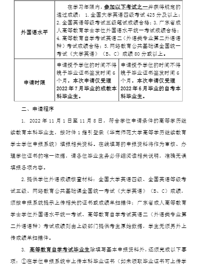 - 2022年華南師范大學(xué)自考本科學(xué)位申請(qǐng)要求