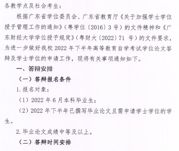 2022年下半年廣東財(cái)經(jīng)大學(xué)自考學(xué)位論文答辯報(bào)名及學(xué)士學(xué)位申請(qǐng)的通知