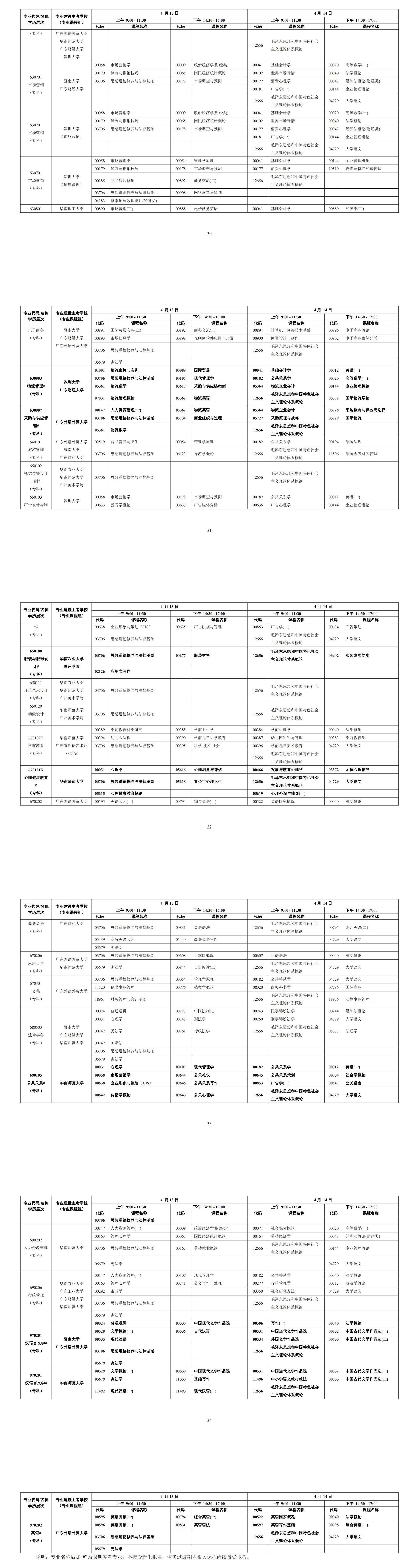 2024年4月廣東自考開考課程考試時間安排
