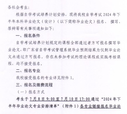 2024年下半年廣東財(cái)經(jīng)大學(xué)自學(xué)考試本科畢業(yè)論文(設(shè)計(jì))相關(guān)工作通知