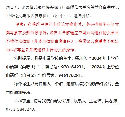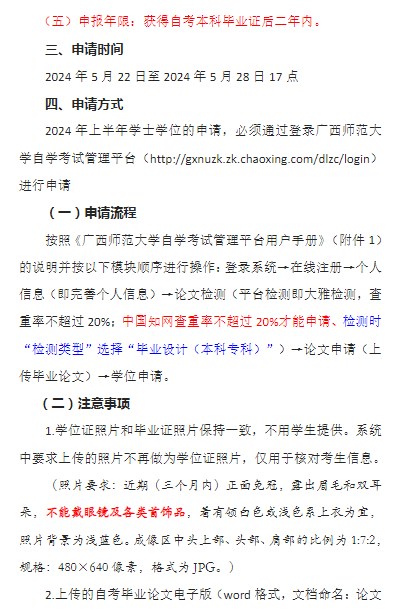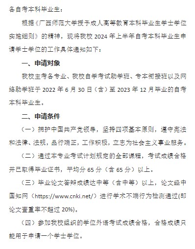 2024年上半年廣西師范大學(xué)自考本科畢業(yè)生學(xué)士學(xué)位申請(qǐng)工作的通知
