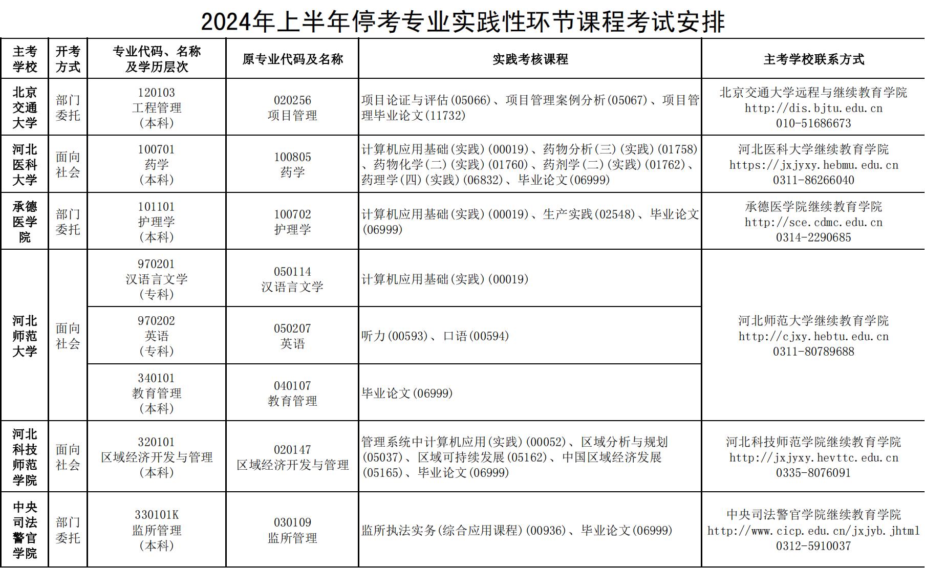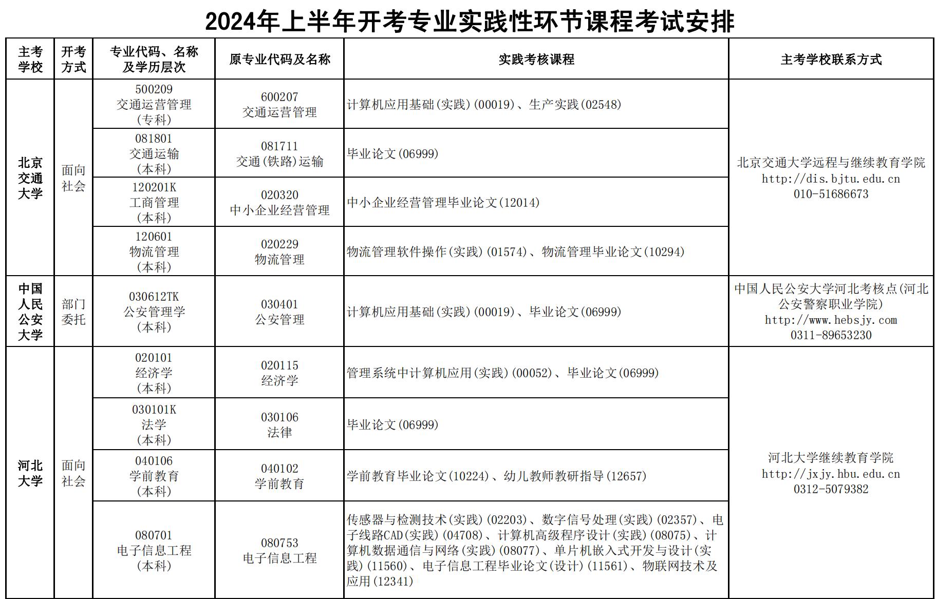 2024年上半年河北自考實(shí)踐性環(huán)節(jié)課程考試安排