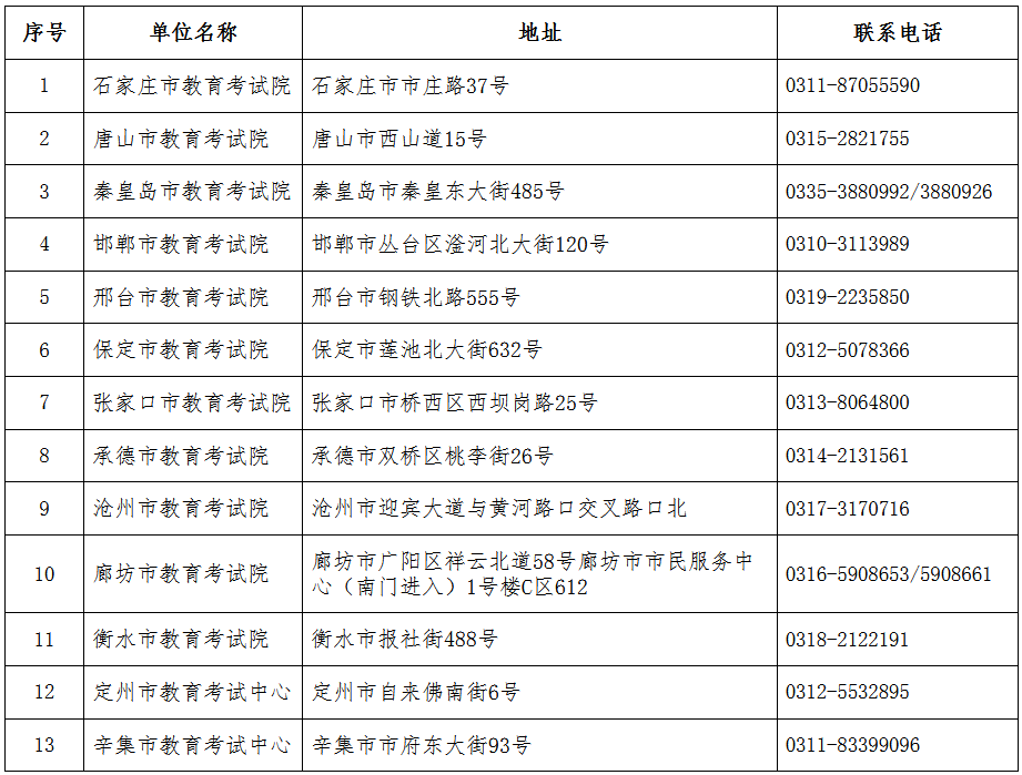各市教育考試機(jī)構(gòu)聯(lián)系方式