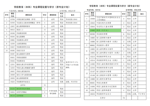 (1)本科專業(yè)原計劃設(shè)置“00015英語(二)(14學(xué)分)”,新計劃設(shè)置“13000英語(專升本)(7學(xué)分)”。