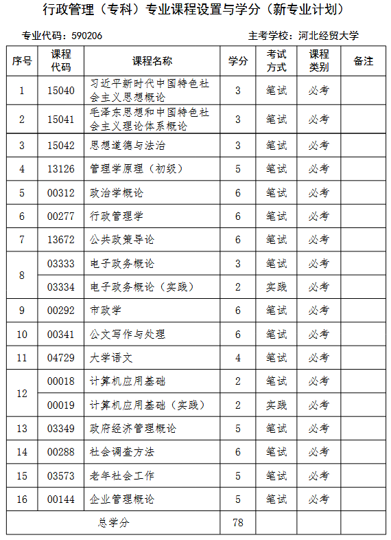 2026年河北自考專(zhuān)科行政管理專(zhuān)業(yè)計(jì)劃