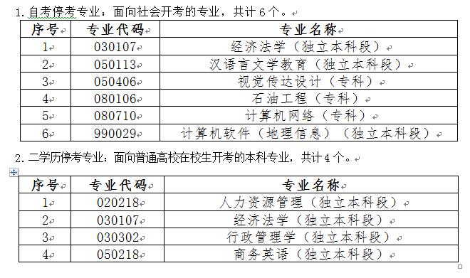 二、停考專業(yè)安排