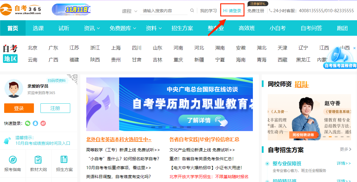1進(jìn)入自考365網(wǎng)校網(wǎng)站首頁,在左上部點(diǎn)擊登錄按鈕,進(jìn)入登錄界面。