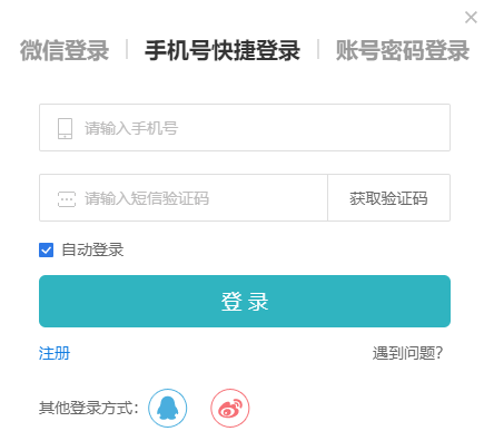 進(jìn)入登錄頁面,點(diǎn)擊手機(jī)號(hào)快捷登錄,在登錄界面下方“其他方式登錄”那里選擇您需要的第三方授權(quán)方式(QQ/微博)進(jìn)行登錄即可。