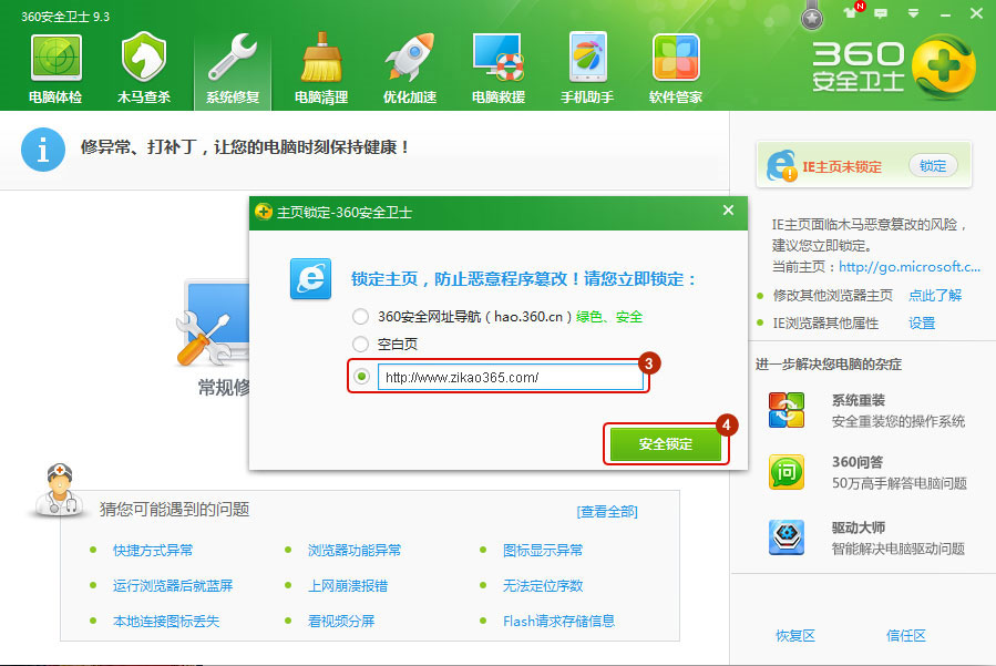 注:如輸入框為灰色無法輸入,請用360安全衛(wèi)士內鎖定主頁