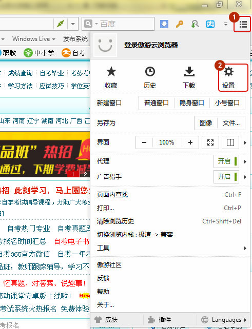 打開傲游瀏覽器-點右上角小扳手-設置,如圖所示: