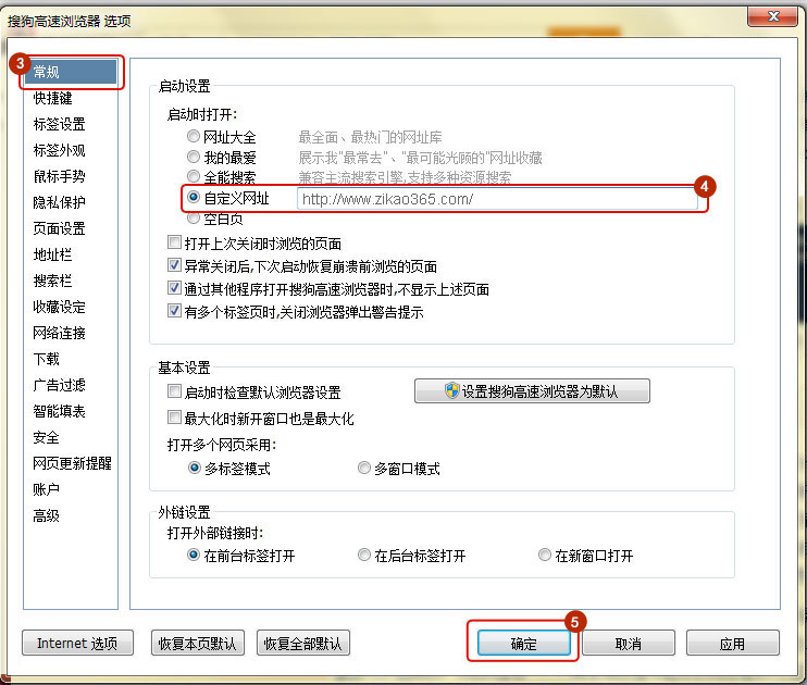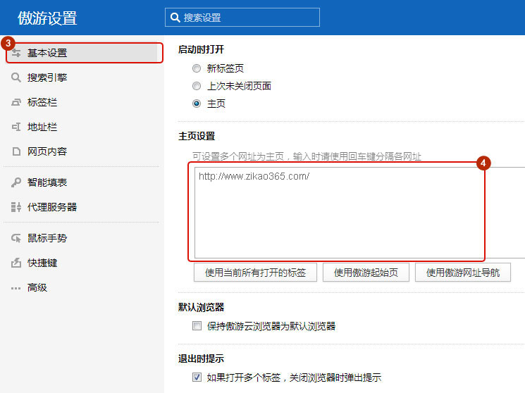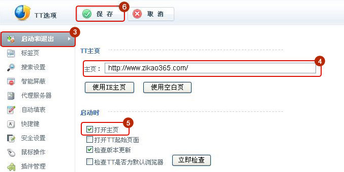 常規(guī)-啟動/退出-自定義主頁內輸入 www.nbakt.cn 確定即可。