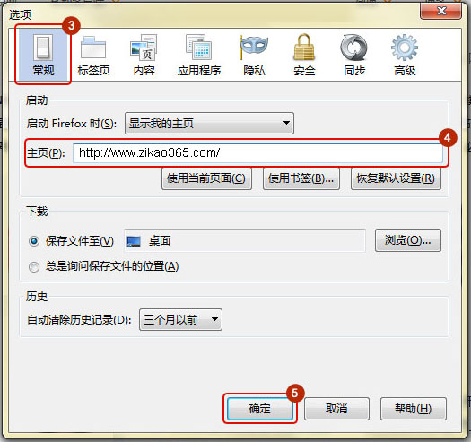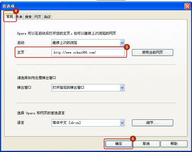選擇"常規(guī)"選項,在"主頁"后的框中填入"www.nbakt.cn" ,點擊確定。