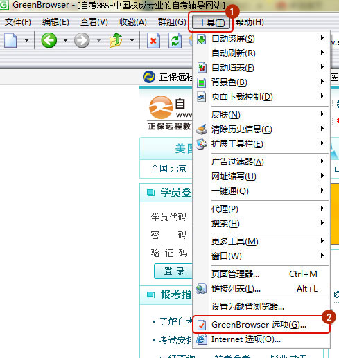 打開綠色瀏覽器-工具-GREENBROWSER選項,如圖所示: