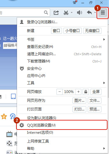 打開QQ瀏覽器,點擊右上角菜單 - QQ瀏覽器設置,如圖所示: