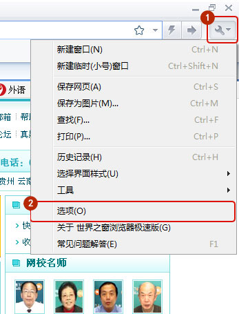 打開360極速瀏覽器-點擊右上角扳手-選項,如圖所示:
