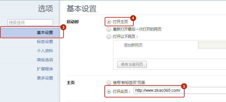基本設置里在主頁設置下面輸入 www.nbakt.cn后,關閉重新打開即可 ,如圖所示: