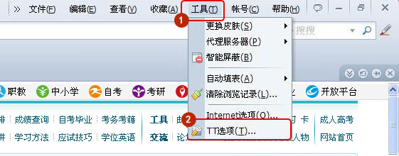 打開TT瀏覽器,選擇工具 - TT選項,如圖所示: